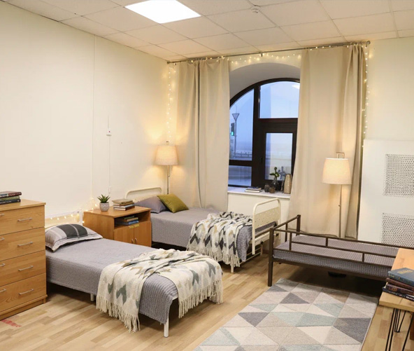 Удобные классические 2-х 3-местные номера: 1-спальные кровати, прикроватные тумбочки, шкаф для одежды, телевизор. Площадь номера - 15-20 м2. Проживание в 2-х 3-местном номере – Стоимость от 2500 руб./сутки.